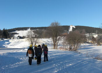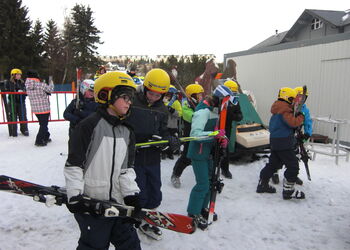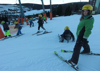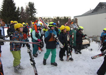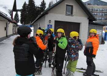 Der letzte Skitag läd bei schönem Sonnenschein auf den Berg ein. Am Nachmittag waren die meisten Kinder "Fichtelbergbezwinger" und haben es geschafft, den großen Hang hinunter zu fahren.