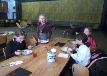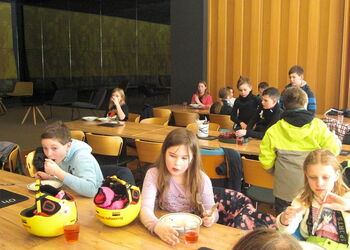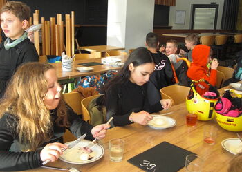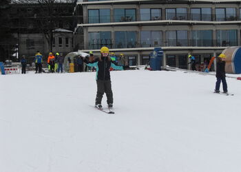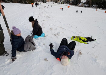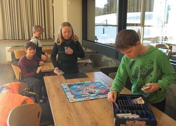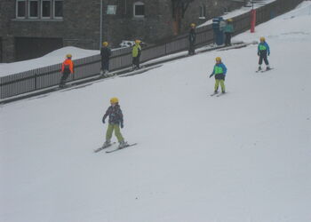Heute haben es schon alle Kinder geschafft, den Hang in der Skischule mit und ohne Kurven hinunter zu fahren und zu bremsen. Der große Höhepunkt des Tages war am Abend das Nachskifahren. Dabei konnten alle ganz alleine so fahren, wie sie wollten.