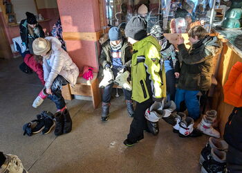 Der erste Tag stand im Zeichen von Zimmer beziehen, Skiausrüstung anpassen und anschliesendem Toben im Schnee.