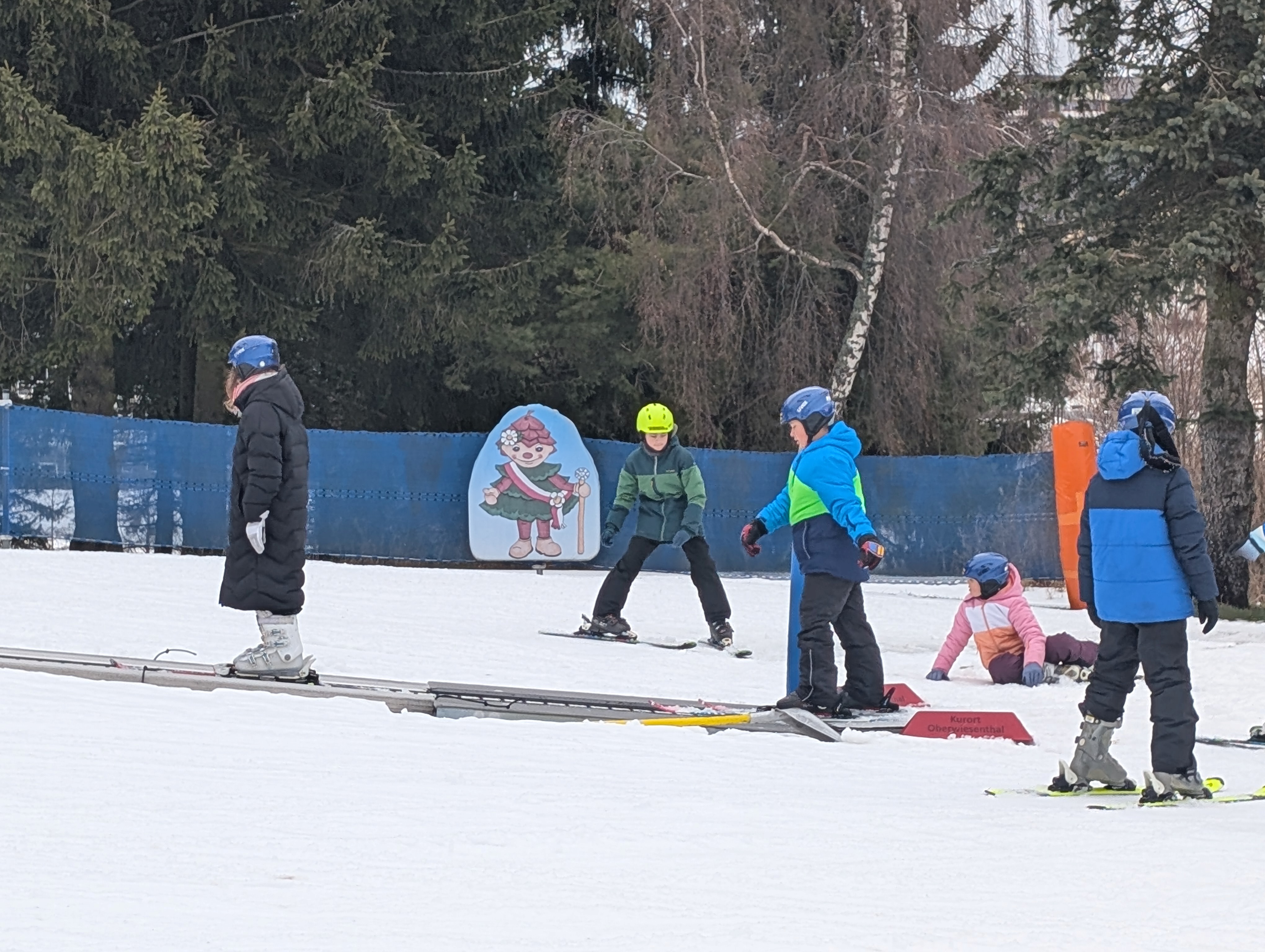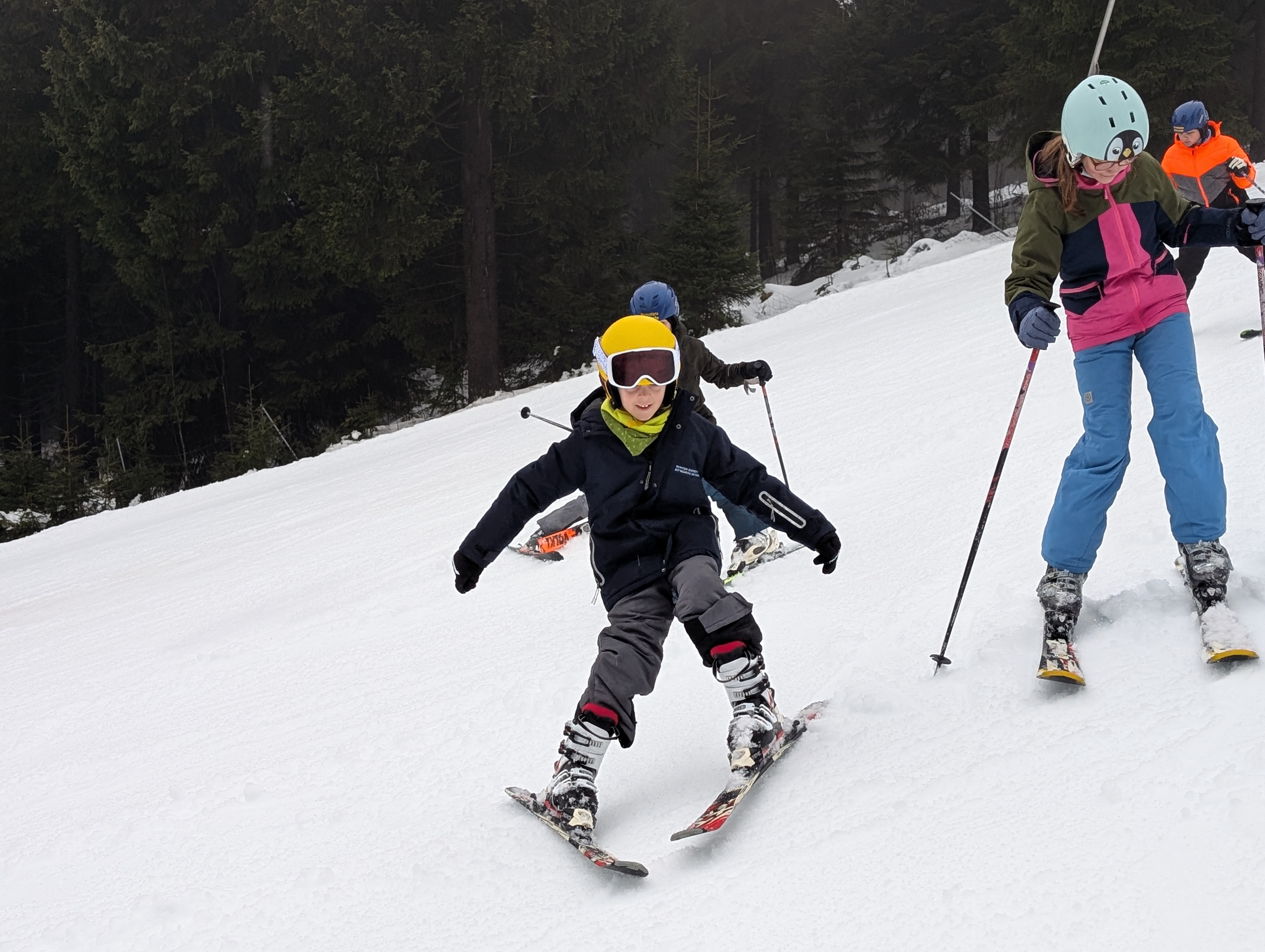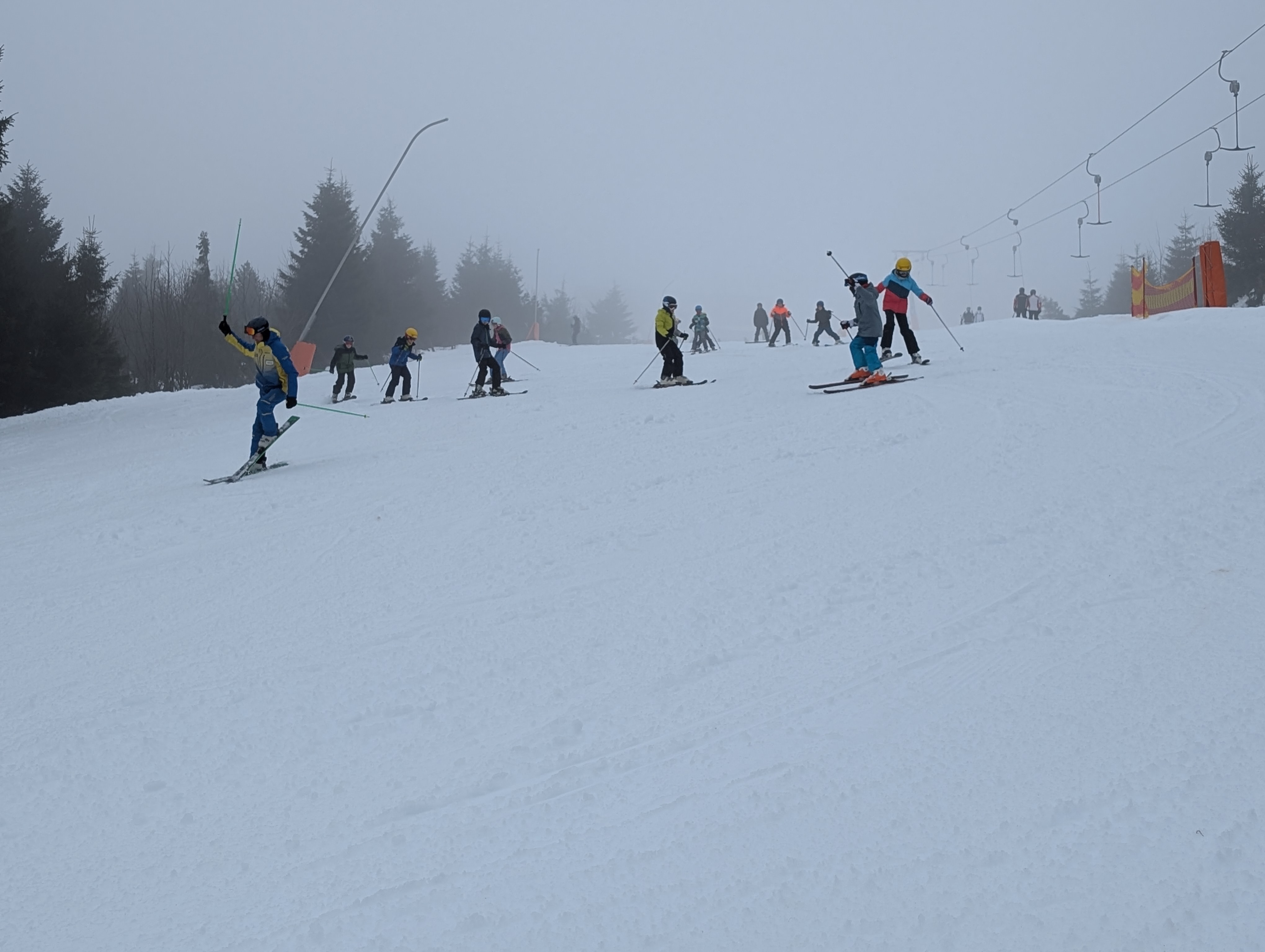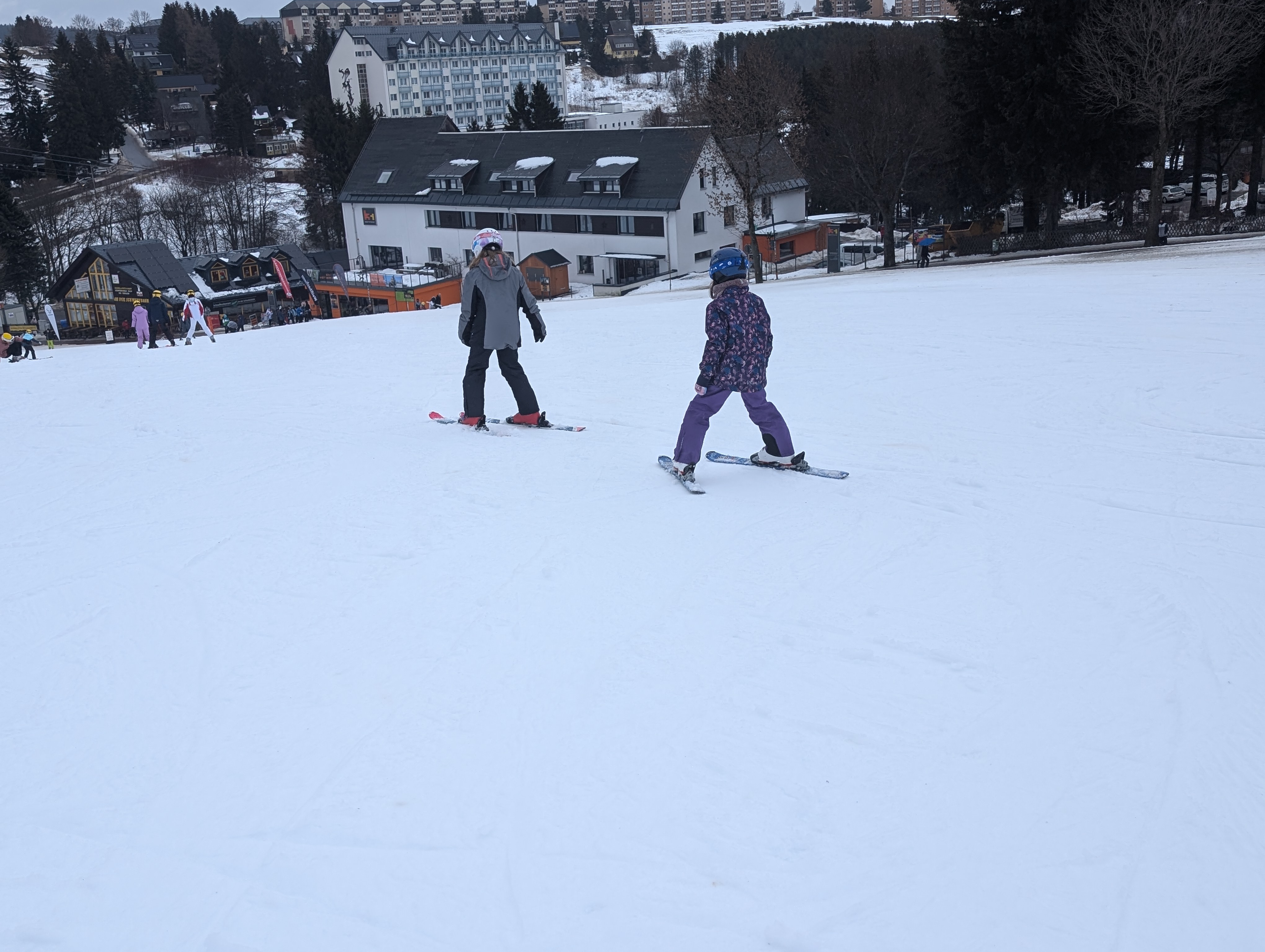 Heute war es nun soweit, alle standen auf den Ski. Einige Kinder fuhren bereits vom Fichtelberg hinunter, während die Anderen es glücklich geschafft haben, den Hang in der Skischule hinunter zu fahren.