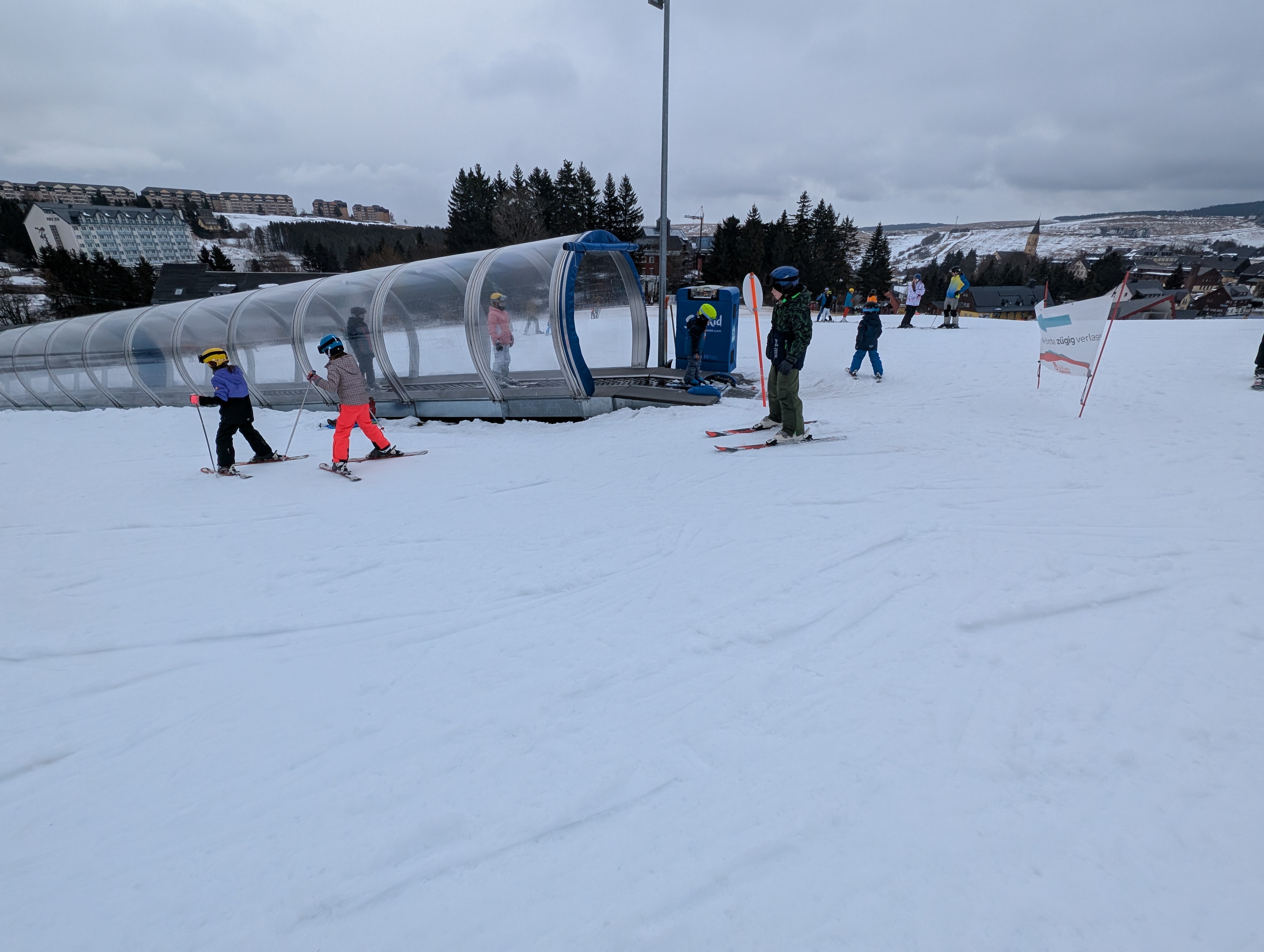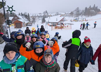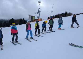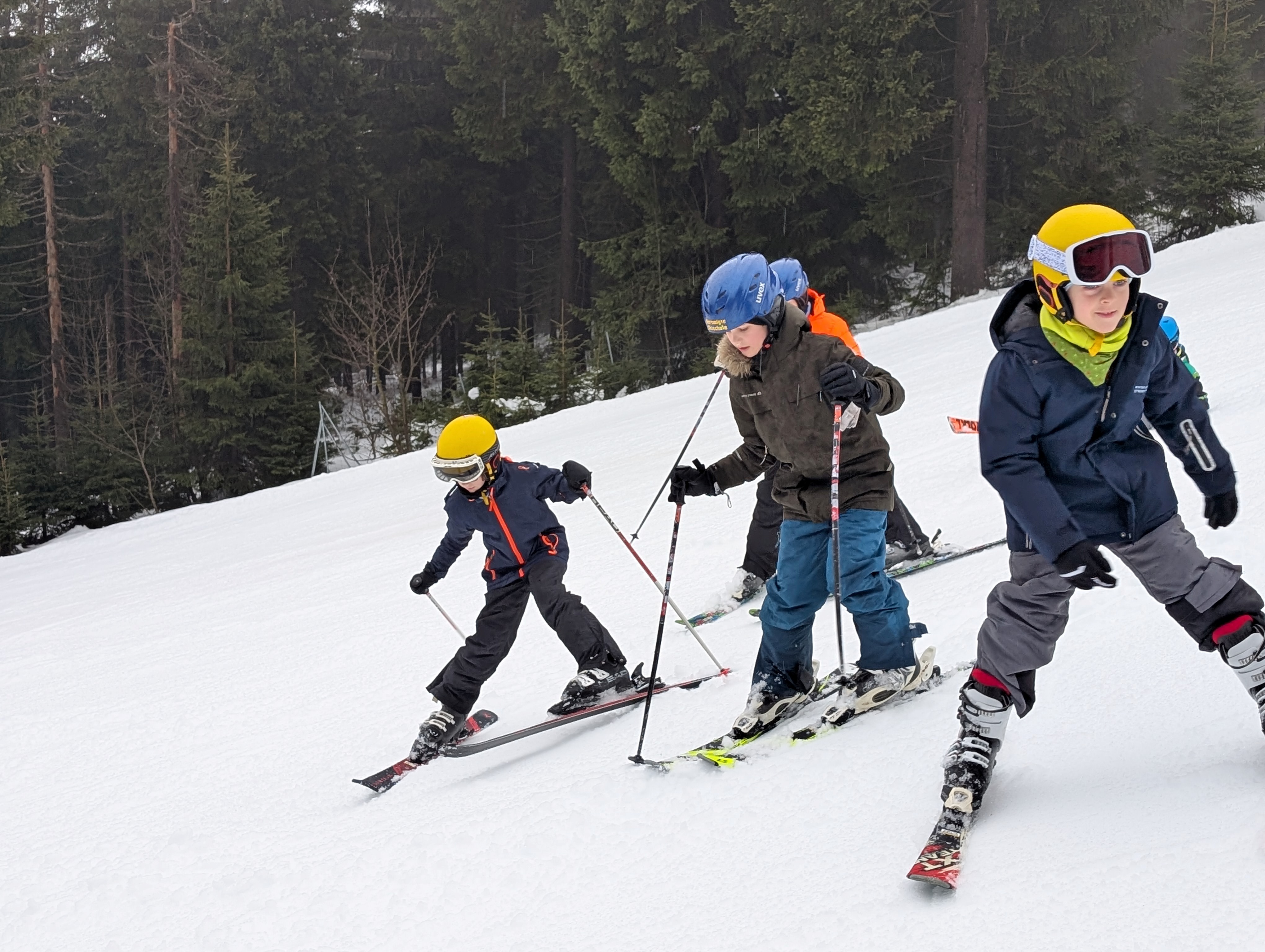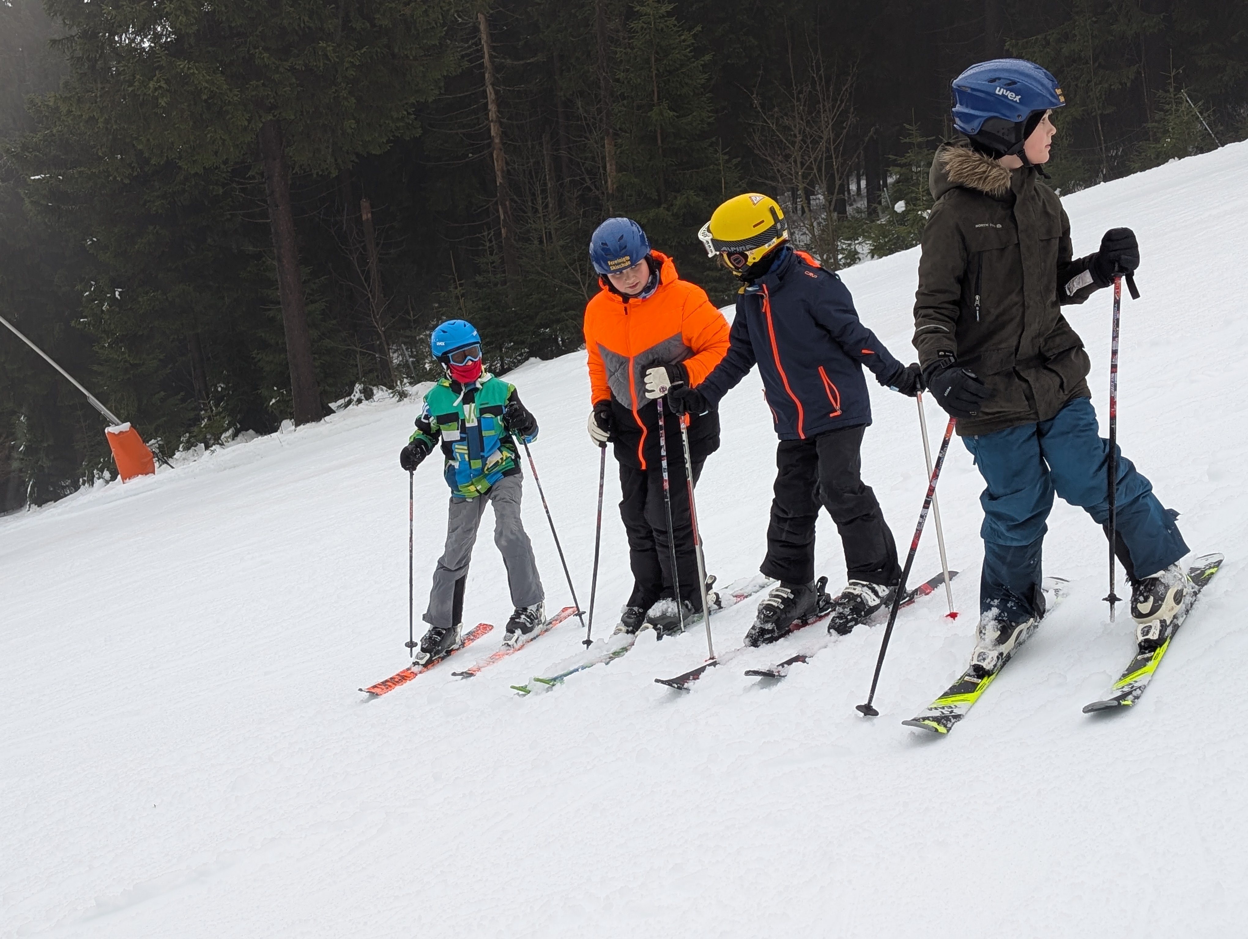 Heute war es nun soweit, alle standen auf den Ski. Einige Kinder fuhren bereits vom Fichtelberg hinunter, während die Anderen es glücklich geschafft haben, den Hang in der Skischule hinunter zu fahren.