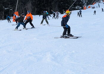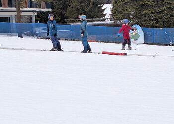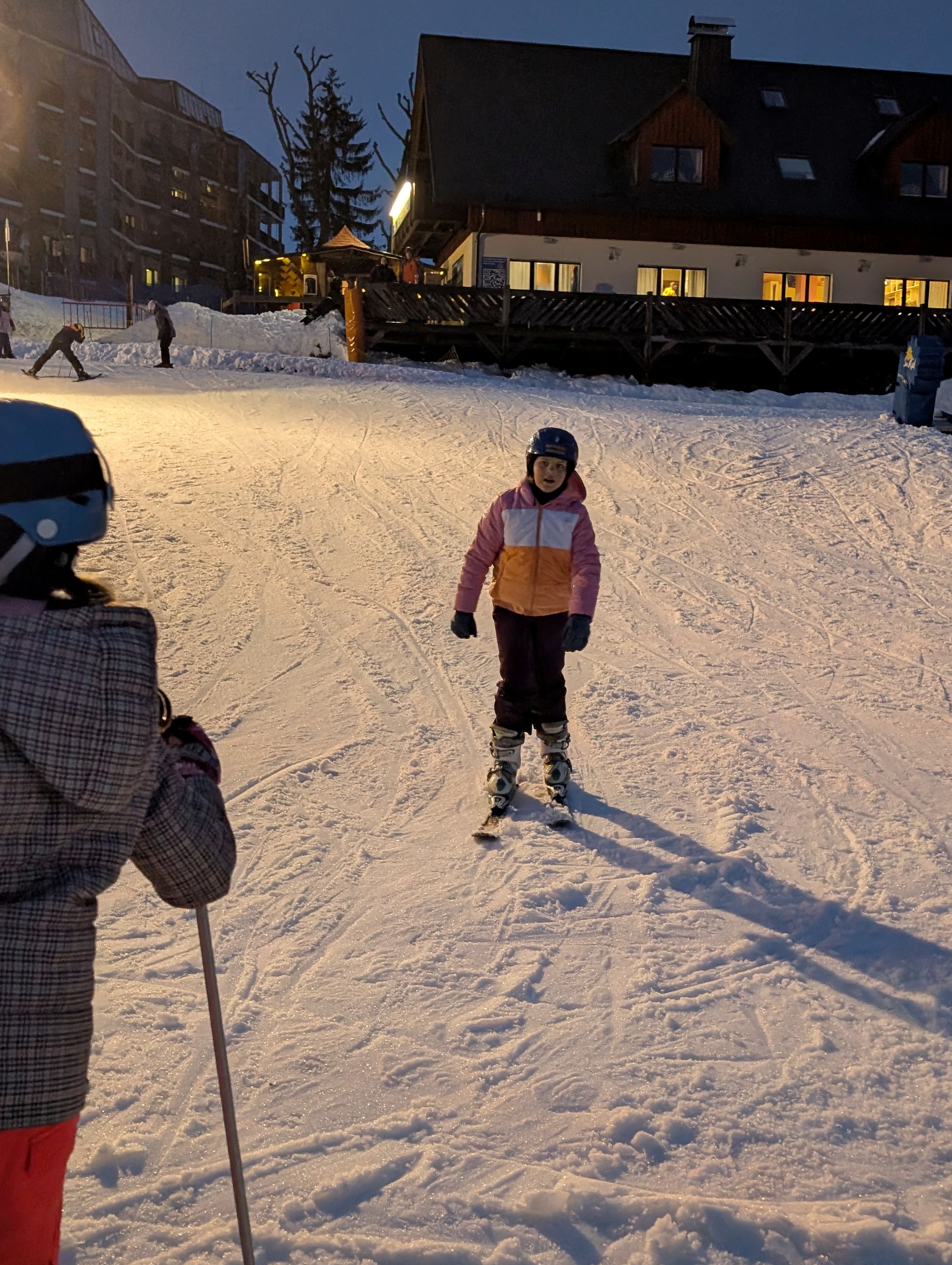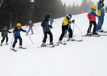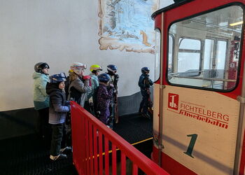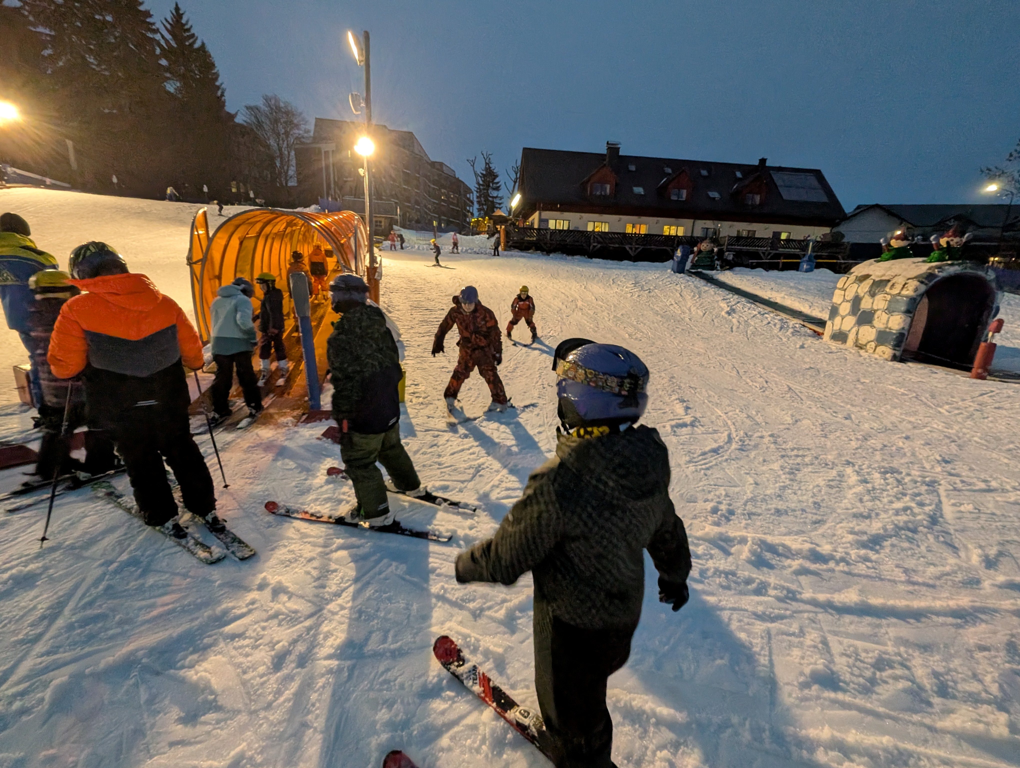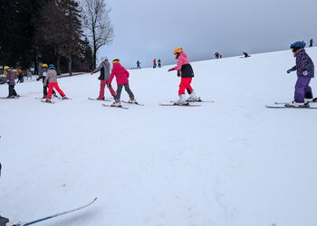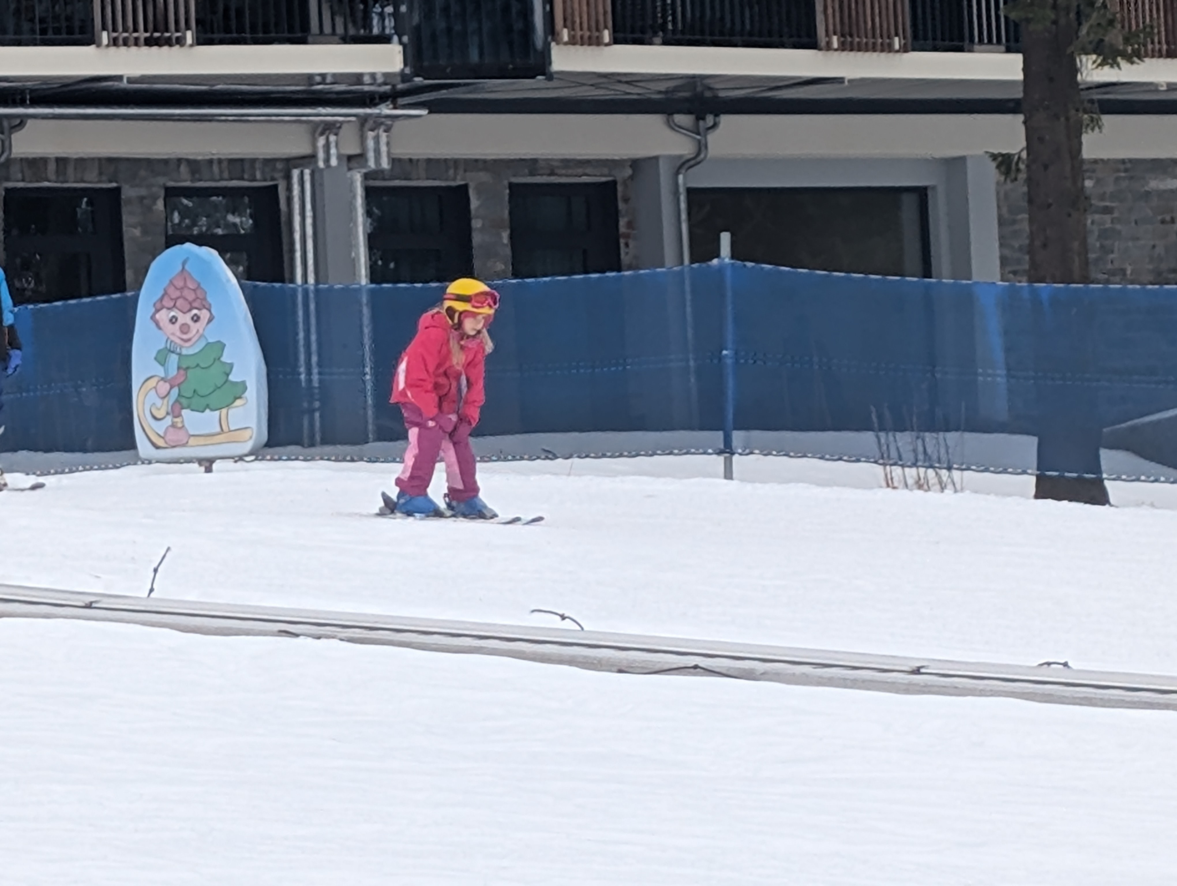 Heute war es nun soweit, alle standen auf den Ski. Einige Kinder fuhren bereits vom Fichtelberg hinunter, während die Anderen es glücklich geschafft haben, den Hang in der Skischule hinunter zu fahren.
