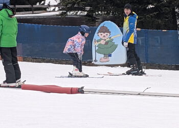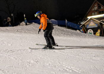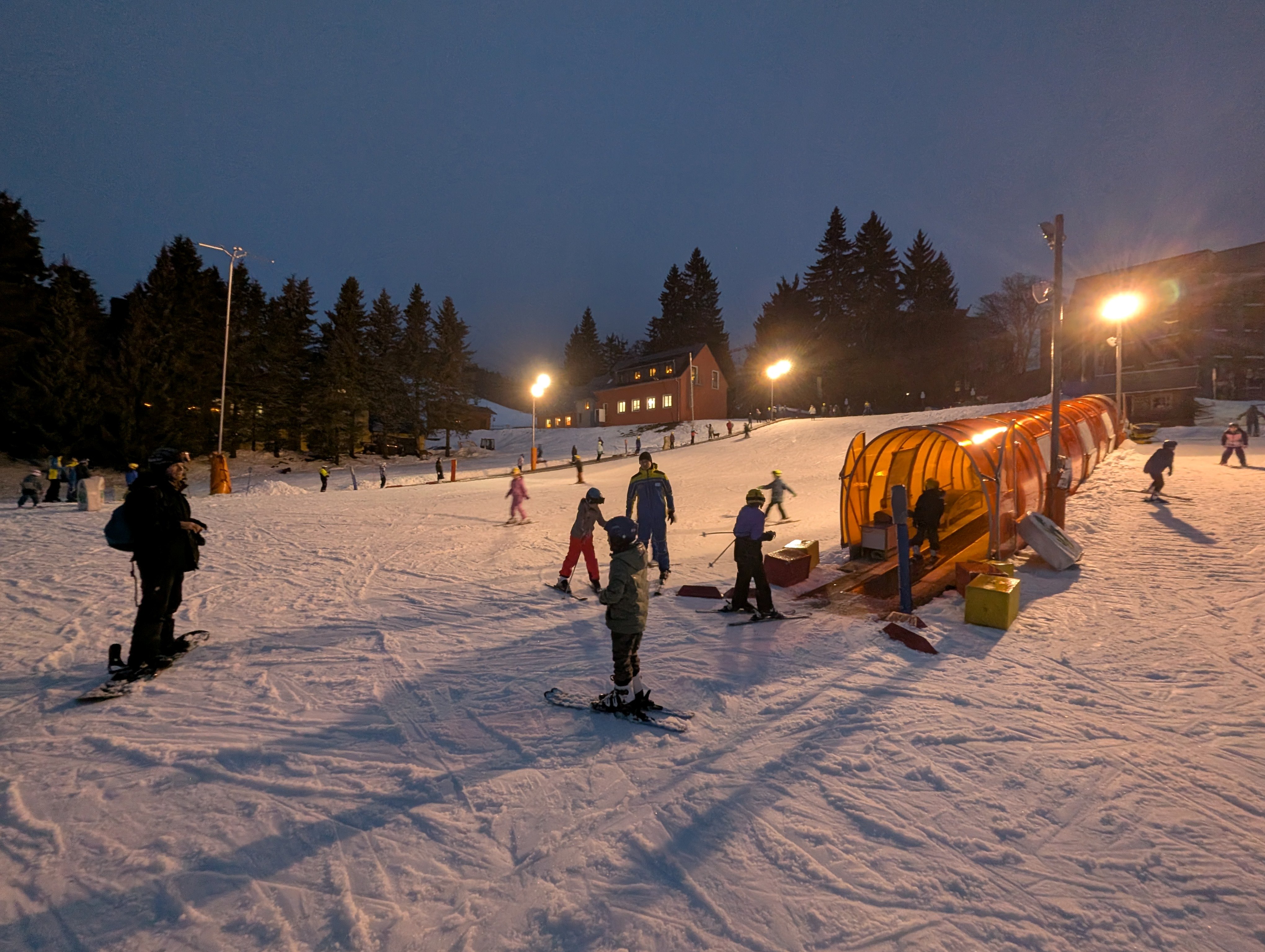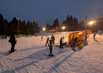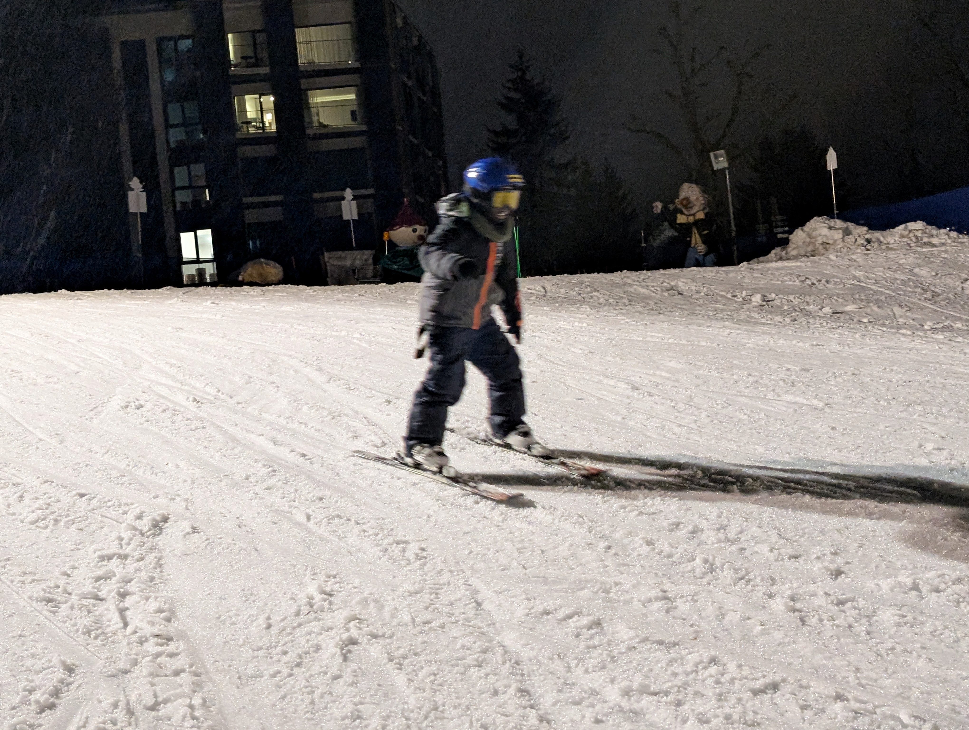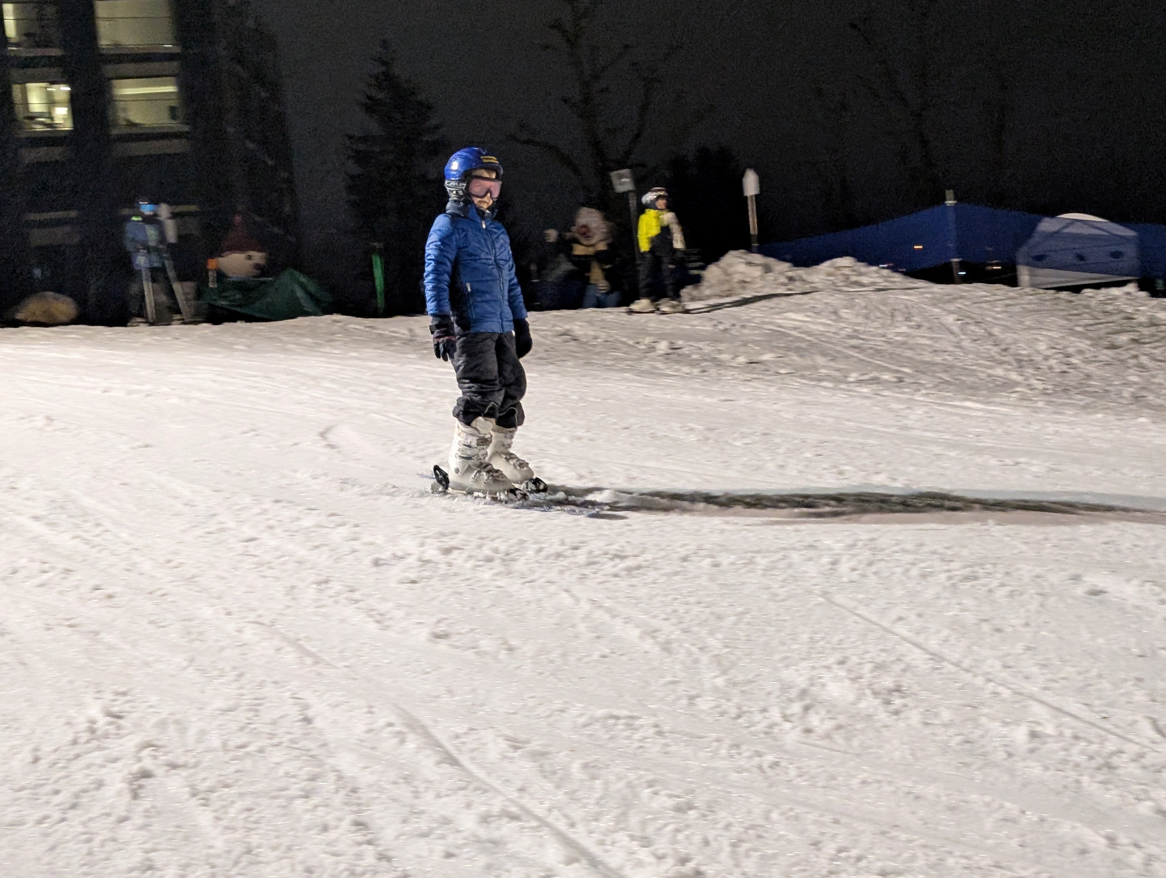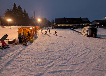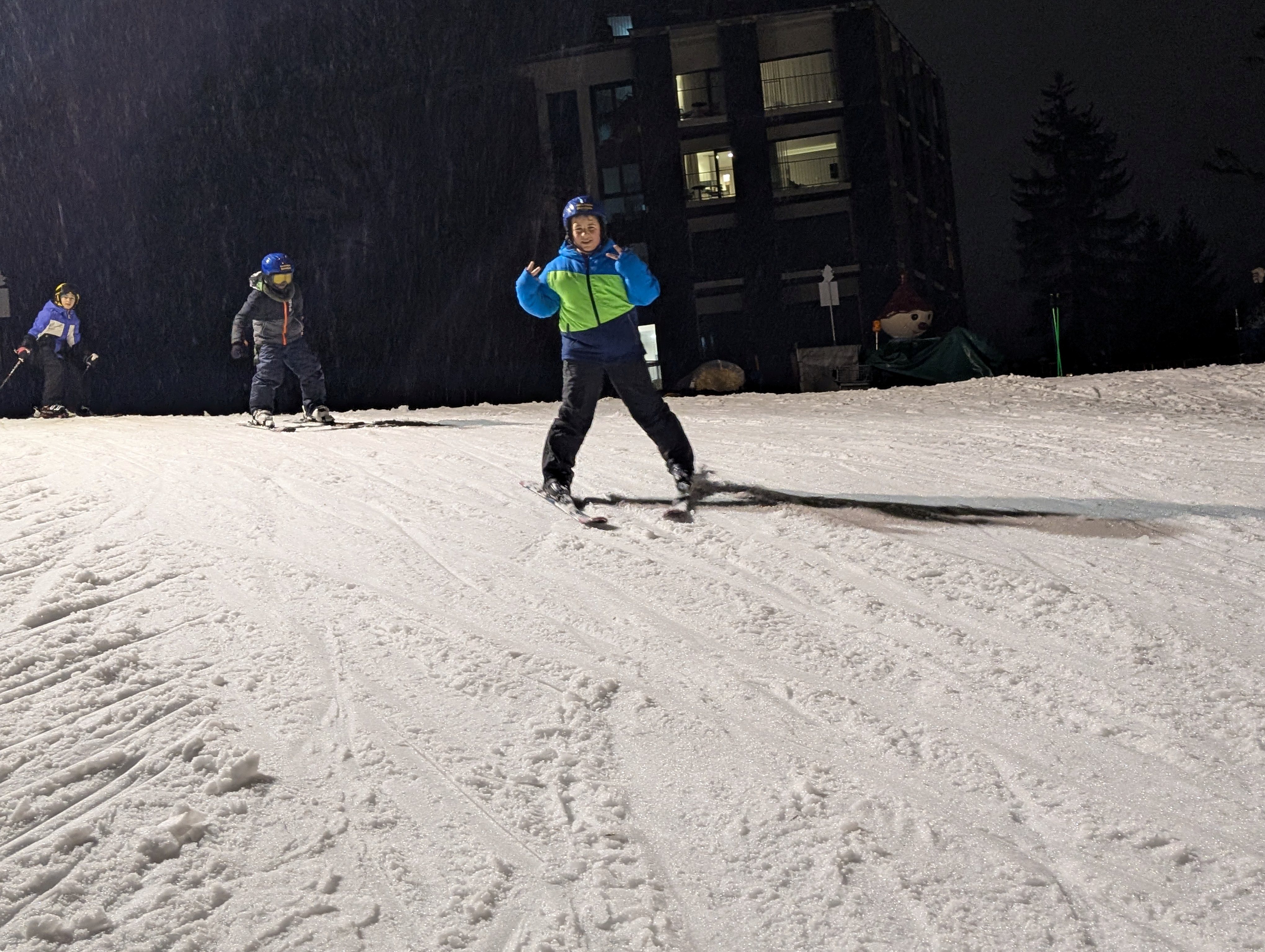 Voller Freude ging es zum zweiten Skitag. Ganz vfleißig wurde am kleinen und großen Hang geübt. Am meisten freuten sich alle auf das "Nacht"skifahren am Abend. Jeder konnte seinem Können entsprechend am Skischulhang frei fahren.