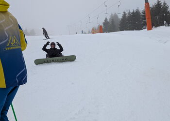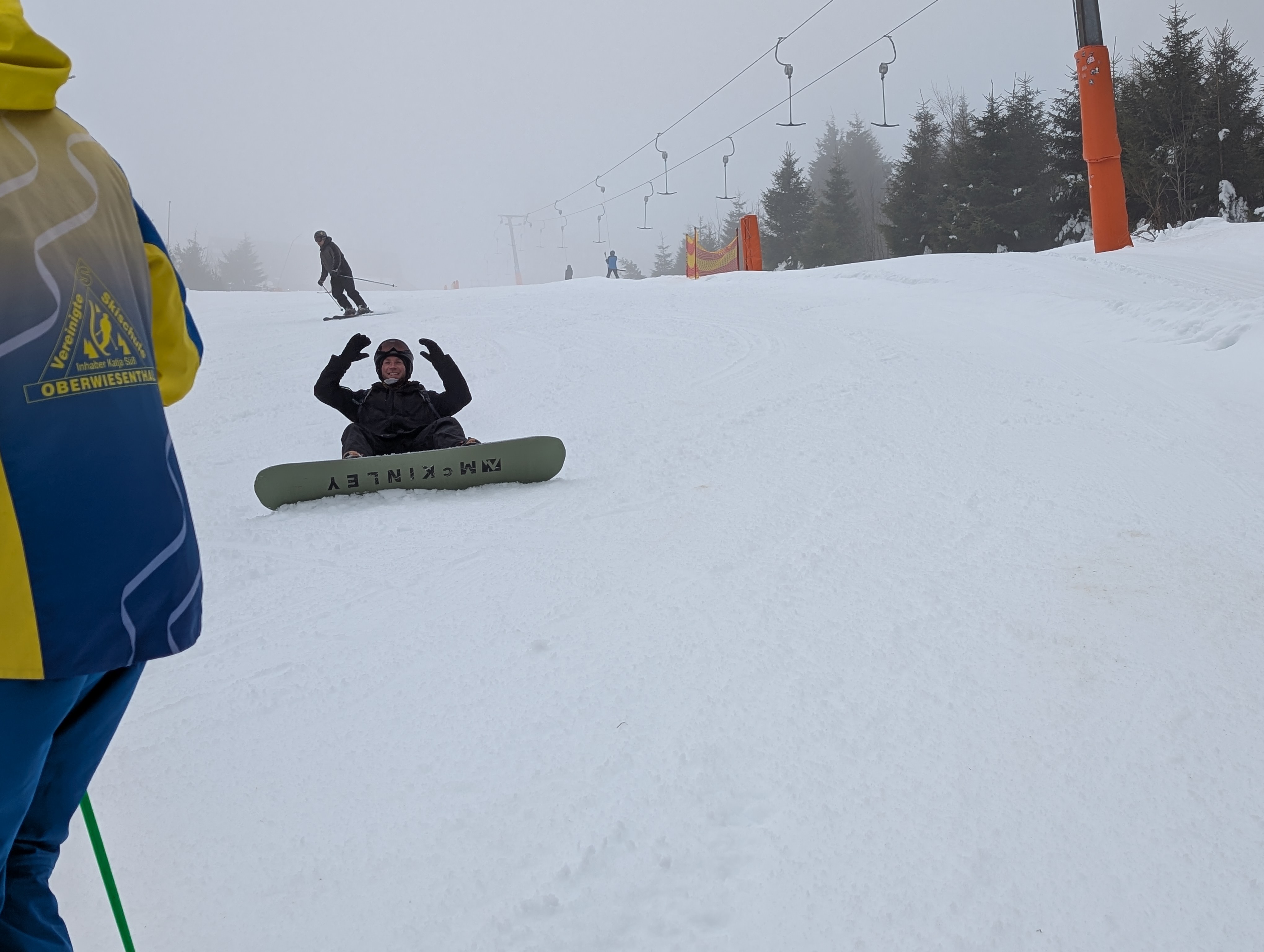 Am letzten Tag auf Brettern ging es für viele zum ersten Mal hoch auf den Fichtelberg. Leider war das Wetter nicht sehr schön. Trotzdem haben alle ihr Bestes gegeben, um das Gelernte der vergangenen zwei Tage anzuwenden und den Berg hinunter zu fahren.
