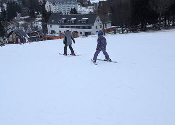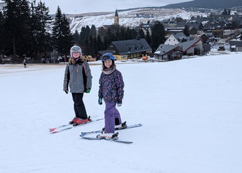 Nach der Ankunft wurden die Zimmer bezogen. Am Nachmittag ging es nach einem ausgiebigen Toben im Schnee zur Skischule, um die Skiausrüstung anpassen. Dannach begaben wir uns noch auf eine Runde durch Oberwiesenthal.
